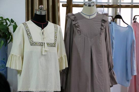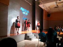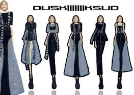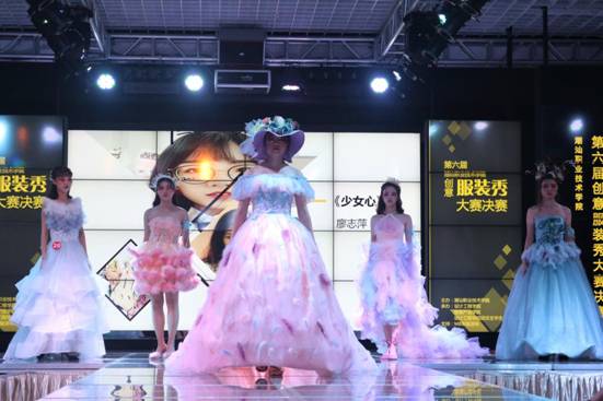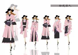 学生作业:在设计过程中,学生形成个人风格,在配色和面料搭配上力争完美,在结合市场流行信息和市场价值基础上尽显创意设计。