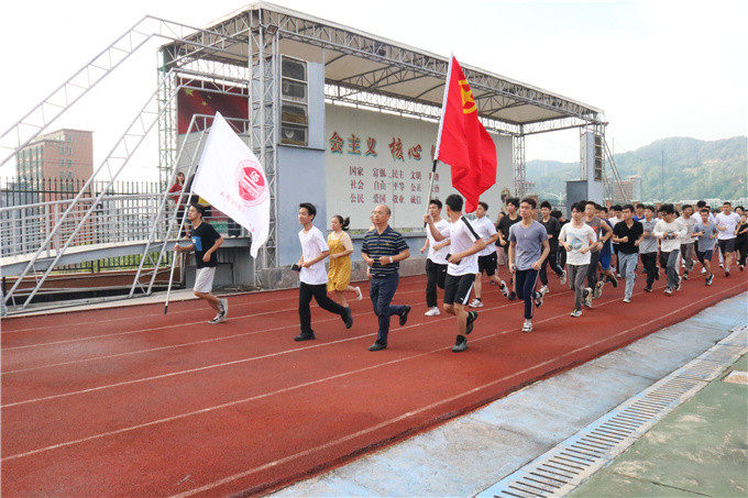 为促进我院学生的习惯养成、意志磨炼、体质增强和健康成长,培养德智体美劳全面发展的社会主义建设者和接班人。结合我校“5·20”育人特色品牌打造工程,工商学院于5月25日至28早上,组织全院学生在操场上开展晨课晨跑活动。 在跑步之前大家都积极做着热身运动,迎着朝阳和晨风,同学们充分展示了大学生朝气蓬勃活力四射的一面。 晨跑进行过程中,同学们井然有序,队伍整齐划一,迈着坚定的步伐,迎着清晨的和风,挥洒着青春的汗水。 生命在于运动,健康在于运动。晨跑对于我们的意义是强化课外锻炼,促进身心健康,引导当代大学生形成良好的体育锻炼的习惯。
