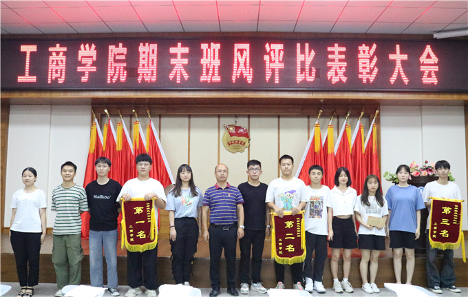 6月30日下午3点,工商学院学生会在第二学术报告厅举行工商学院期末班风建设评比表彰大会。参加本次大会的领导老师有:党总支书记尹华根,团总支书记陈金辉,辅导员余佳璐老师,谢冰娜老师,麦馥源老师。工商学院各班级班干部代表参加了此次会议。 学习部干事宣读教师对各班级学风情况的总体评价。 学习部干事宣读班风评比细则和各项评比指标。 获得本次期末班风评比前三名的班级是 第一名19级旅管 第二名20级人力1班 第三名19级药质 随后19级旅管班班干代表房仙梅上台作经验分享。 会议最后,工商学院党总支书记尹华根发表讲话。 尹华根书记对获得本次班风评比前三名的班级表示祝贺。他表示,班风即一个班的风气,是由班级成员共同营造的一种氛围。班风也是一个班级的风貌,不是局限于个人的风尚,而是整个集体的风貌。他希望同学们要遵守校规校纪,努力培养自身的良好学习习惯,创造一个良好的学风校风,为校添彩!