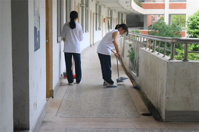 下午3点,同学们齐齐出动,手持清洁工具辗转在校园的各个角落,一丝不苟的进行清扫。