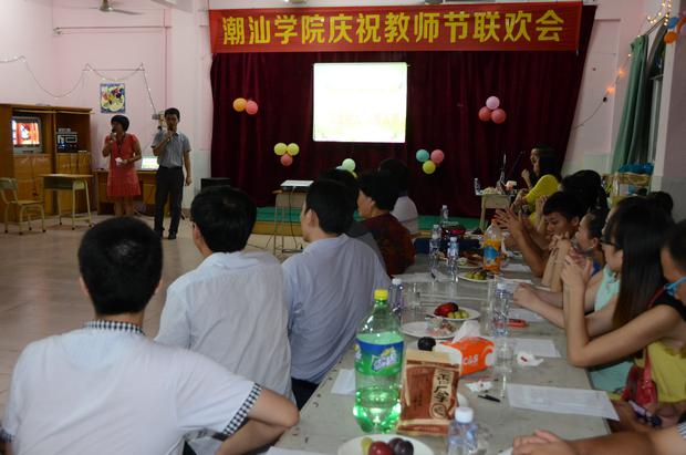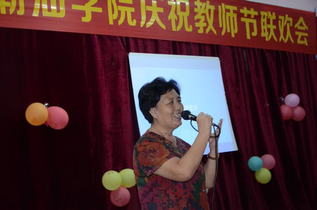 学院举办“教师联谊会” 9月10日晚,学院为庆祝教师节在“教工之家”隆重举行联谊会。党委书记韩淑芳、党委副书记张业宏、党政办公室主任李育华等各位领导、及行政各部门教师、辅导员、本学期刚来我校工作的新老师参加联谊晚会。 联谊会开始之初,张业宏副书记发表了热情洋溢的祝词。张书记传承精神,凝聚人心,励精图治,奋发有为。 联谊会由外语外贸系陈壁玲老师和谢光辉老师主持。我院党委副书记张业宏歌唱的《在那桃花盛开的地方》把会场的气氛推向了高潮。我院党委书记韩淑芳也高唱了一曲更是让现场各位老师陶醉其中。 联谊会过程中,教师们还参加了各种各样精彩有趣的娱乐游戏,如:抢凳子、你比我猜等,激起了一阵阵笑声,不时还博得观众的热烈掌声,增强了教师之间的交流和理解,促进了教师之前的感情,使整个联谊会在热烈友好的节日氛围中进行。 党委书记韩淑芳 谢舜君 2013年9月13日