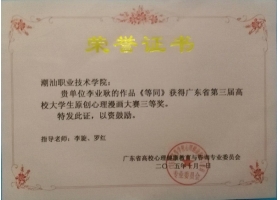 在10月10日世界精神卫生日,由广东省高校心理健康教育与咨询专业委员会举办的“广东省第三届高校大学生原创心理漫画大赛”中,我系学生李业耿同学的作品《等同》获得三等奖。 学生获奖证书 本次比赛的主题思想是“健康、和谐、幸福”,通过本次比赛,可以进一步丰富、创新大学生心理健康教育的形式和方法,调动大学生参与心理健康的积极性和主动性。 学生获奖作品