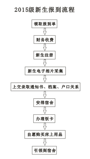 时间:新生统一为2015年9月11日至12日报到,如有特殊原因不能按时报到,应先来函或来电向我院招生办公室请假,超过一周仍不报到的,视为自动放弃入学资格。