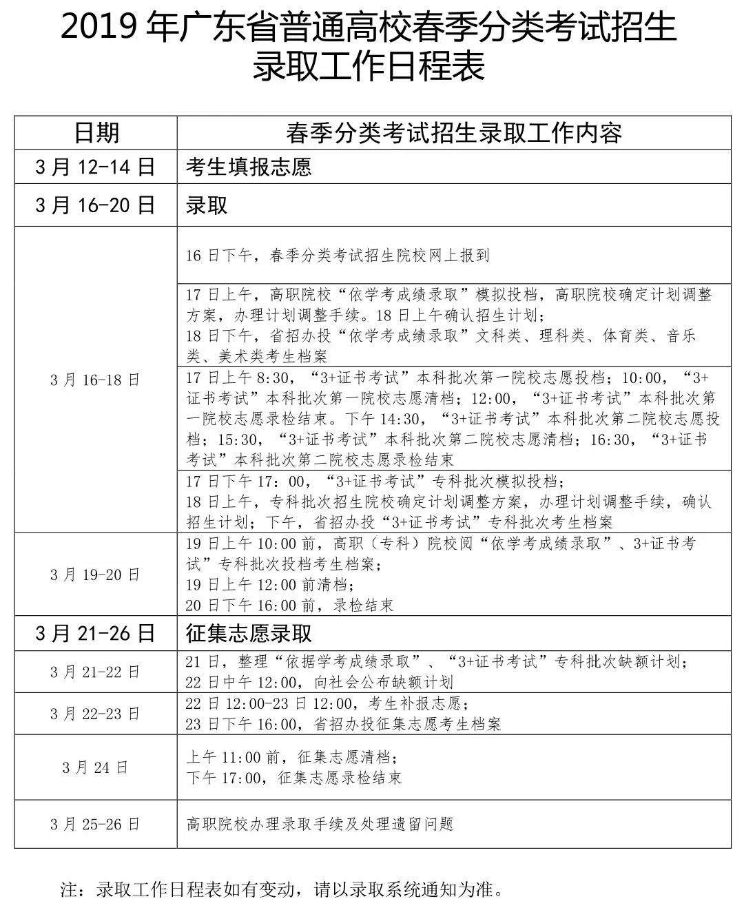 2019年春季分类考试招生录取实行网上填报及确认志愿。填报志愿时,考生须先凭高考考生号和密码登录省教育考试院普通高考管理系统考生端(网址为:
