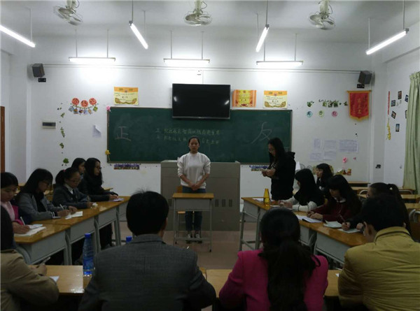 3月28日,商务贸易系在新教学楼举行第十三届辩论赛代表队培训会,商贸系副主任郑重、蓝李蓉老师、袁佳妮老师以及林锦波老师参加了本次培训会。 会上,商贸系代表队现场模拟,你来我往,气氛紧张,之后袁佳妮和林锦波俩位指导老师通过代表队的一番展示,分析赛题,现场对当下辩手存在的不足做了点评以及相应的提出希望。同时赛场的禁忌、辩论礼仪等事宜作了详细的讲解。鼓励各位辩手在接下来的日子再接再厉,在赛场上秀出自我,秀出风采。最后,说到赛场上碎石激烈到要以友好的姿态出现。 通过本次培训之后,各位辩手对辩论赛的总体情况有了更深入的认识。其次是希望各位辩手在四月份的赛场能够更好的表现自我,丰富自我。