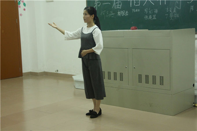 比赛刚开始前,就有同学陆陆续续的过来参加比赛,他们在休息室候场的同时也在为自己的比赛做最后的准备,这个看看稿来那个练练声。更有同学不仅仅自信的站在讲台上讲诉自己熟悉的景点,而且在才艺表演时邀请评委老师上台互动,与之跳舞。从这次的比赛中可以展现出同学们的自信与风采,让他们有一个空间展现自己。