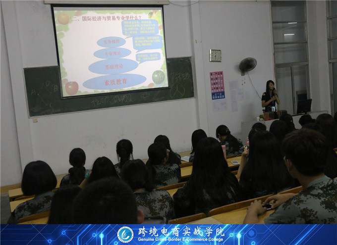 紧接着是专业老师对各个专业以及专业方向的介绍。首先由叶炳森老师介绍跨境电商实战学院,他以跨境电商实战学院成立时间为切入点、图文并茂的介绍了什么是跨境电商?跨境电商专业方向能学什么?以及跨境电商实战学院现主要学习的平台进行了介绍、包括跨境电商目前的就业前景等方面详细介绍,现场的新生们表现出极大的兴趣,气氛热烈。 ![]() ![]() ![]() ![]() 叶炳森老师介绍跨境电商实战学院 紧接着,庄映红老师介绍我系的商务英语专业,她从专业性质、专业建设及人才培养等方面详细介绍了该专业特色。 ![]() ![]() 庄映红老师介绍商务英语专业 随后,唐琛老师从中国旅游发展的现状出发分析了旅游管理专业的前景,并指出该专业的特色在于实践教学手段丰富,注重培养学生的实操能力。 ![]() ![]() 唐琛老师介绍旅游管理专业 刘艳红老师介绍我系国际经济与贸易专业,并介绍了国际经济与贸易专业的发展情况,与新生们分享了她个人对国际经济与贸易专业的看法和就业前景等,通过照片及文字让新生们对国际经济与贸易专业有了深刻的认识和了解。 ![]() ![]() 刘艳红老师介绍国际经济与贸易专业 我系学生会干部也简单明介绍了我系学生会,进一步让新生了解我系学生会,并希望能有更多的新生加入我系学生会这个大家庭,共创辉煌,建设美好的校园风范。 ![]() ![]() 学生会干部介绍商务贸易系团总支学生会 最后,商务贸易系副主任陈壁玲做了本次大会的总结并希望同学们把在军训中吃苦耐劳的精神发扬到今后的学习中,要求同学们在今后的学习、生活中要认真遵守学校的各项规定,处处严格要求自己,要珍惜大学时间,积极努力认真学习,争取以优异的学习成绩圆满完成自己的学业,努力争做优秀的大学生。 ![]() 副主任陈壁玲讲话 大会结束后,跨境电商实战学院师生有序的组织新生们到综合楼B403至B405跨境电商实战基地进行了参观,基地的学员对新生表示了欢迎并对新生提出的问题一一做了解答,许多新生对跨境电商实战表现出浓厚的兴趣。 ![]() ![]() 新生参观跨境电商实战学院 |