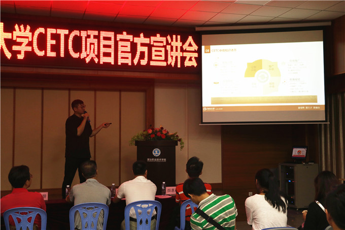 随后淘宝大学孙亚伟经理对CETC项目进行了详细的解读,对相关的学习、师资和等级考试等内容以及所能达到的效果做了细致的描述。得到同学们的高度认可,讲座现场大家积极提问,互动热烈,表现出对淘宝大学CETC项目的期待。