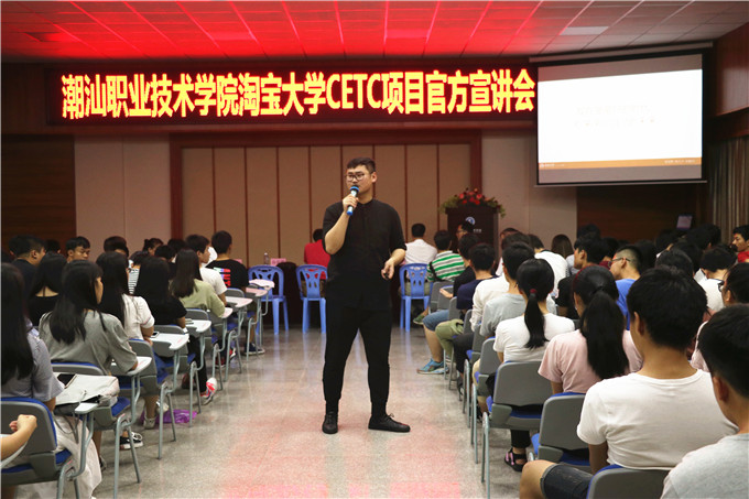 2017年6月30日上午,学院在第二报告厅举行“潮汕职业技术学院淘宝大学CETC项目官方宣讲会”。出席会议的领导有潮汕职业技术学院董事长、院长纪少游先生、常务副院长单振东先生、淘宝大学CETC项目负责人孙亚伟先生、董事长助理齐广武先生、教务处处长刘玉华、质保办主任张桂春主任、创业学院颜惠雄院长及创业学院部门领导及老师们。大会由潮汕职业技术学院院长助理李育华主持。