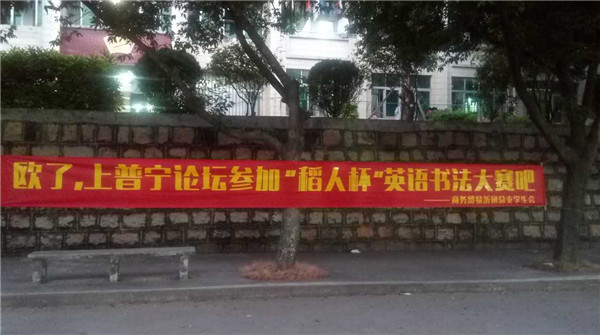 | 11月18日晚上,商务贸易系团总支学生会在X栋教学楼301至306教室举办第三届“稻人杯”英语书法大赛"初赛"