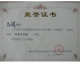 我院学生参加首届“全国高职高专英语写作大赛”获殊荣
