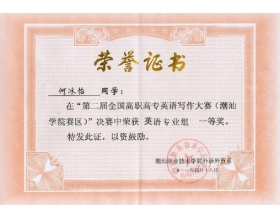 潮汕职业技术学院第二届英语写作大赛总结 去年我院选手在首届全国高职高专英语写作大赛在省赛区选拔中,在公共英语组和英语专业组均取得二等奖的好成绩。为让这种优势更好地发扬下去,继续带动我院重视对学生英语写作能力的培养,进一步关注学生英语应用能力的整体提高...