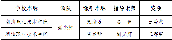 本次比赛由广东省教育厅主办,来自全省47所高职院校的160名选手参加了比赛,大多院校为公办院校。本次在竞赛内容包括理论考试、景点讲解、才艺表演三个环节。经过激烈的竞争与角逐,由我院商贸系谢光辉老师、唐琛老师指导的张海蓉、梁惠珊同学表现稳定,都获得了中文组三等奖。