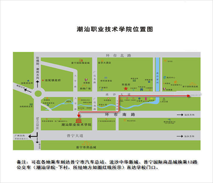 潮汕学院中职部交通指引图