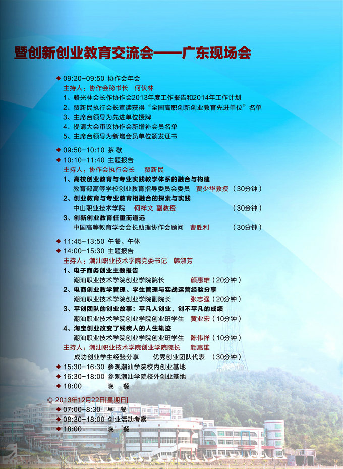 全国高职高专创新创业教育协作会2013年年会 暨创新创业教育交流会——广东现场会 日程安排