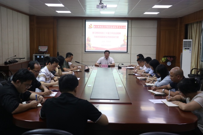 9月20日,学校党委理论学习中心组召开九月份学习会,专题学习贯彻党的二十届三中全会精神。 根据第一议题制度,会上,党委委员钟逍彬同志领学了9月16日出版的第18期《求是》杂志发表的习近平总书记的重要文章《在党的二十届三中全会第二次全体会议上的讲话》。 会上,党委书记李育华同志对保密教育工作作出强调,党委副书记王笃学同志汇报了学校关于党纪学习教育总结情况,综合党支部书记林少欣同志对我校“学习强国”同学汇上线情况作了说明。 李育华同志以《学习贯彻党的二十届三中全会精神,为教育强国建设贡献自身力量》为题,从新时代新目标新使命、民办高教的发展格局、加快推进高质量发展三个方面展开详细讲述。 李育华同志强调,校党委、各党总支、各支部要认真贯彻落实党的二十届三中全会精神,肩负起强国建设背景下民办高等教育发展的责任使命,加强依法治教,加快转变发展方式,坚定走发展之路,坚持“两个毫不动摇”,继续以高度的政治责任感和使命感把党的教育方针全面贯彻到学校工作各方面,展现新作为,取得新成效,为中国式现代化的广东教育实践作出新的更大贡献。 |