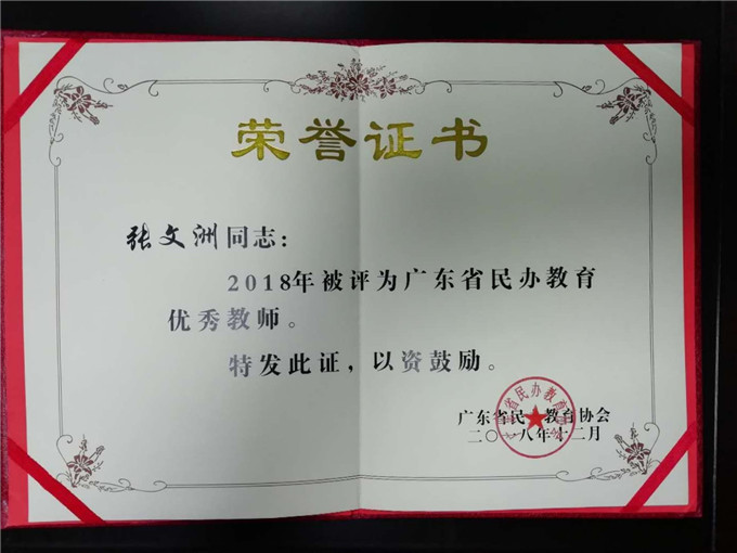 近日,广东省民办教育协会发布《关于表彰广东省民办教育优秀教师、优秀教育工作者、优秀校长的决定》,对2018年广东省民办教育优秀教师、优秀教育工作者等进行表彰。我校财会金融学院教师张文洲获评2018年广东省民办教育“优秀教师”。
