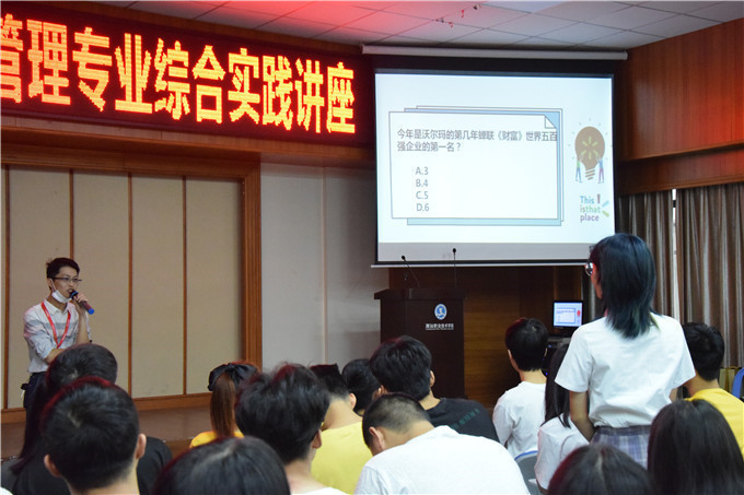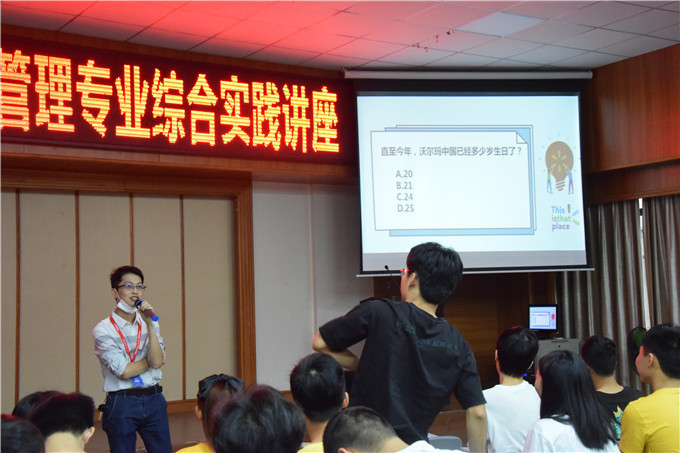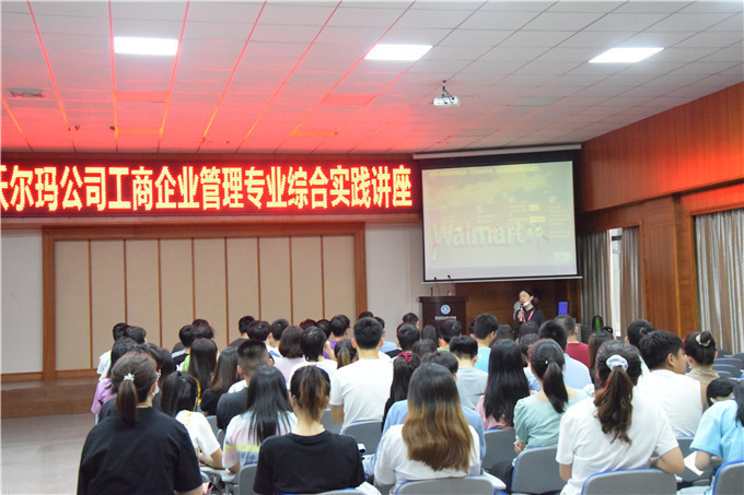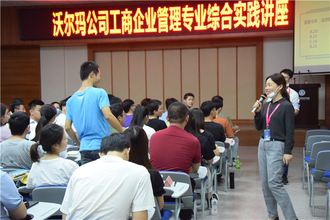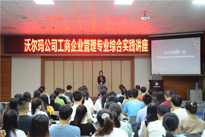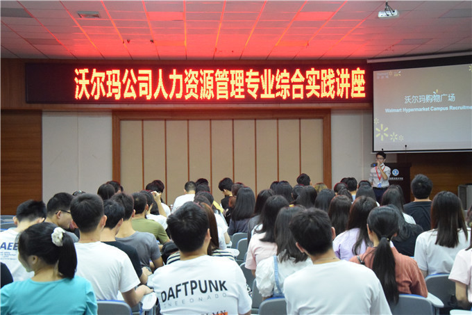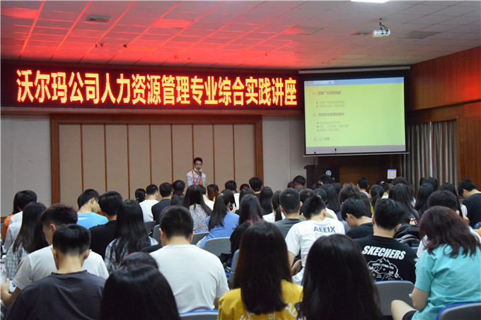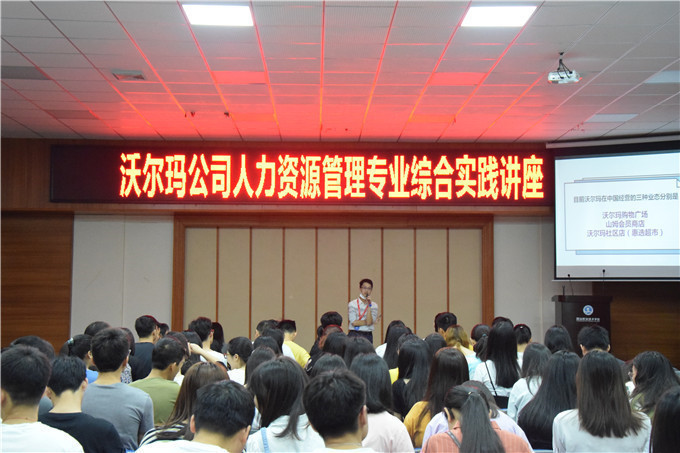 经济管理学院举办管理类专业知识讲座 2020年10月15日-16日,经济管理学院在第二报告厅举行了沃尔玛公司工商企业管理专业和人力资源管理专业综合实践讲座。18级工商企业管理专业和18级人力资源专业全体学生参加了本次讲座学习 。 沃尔玛普宁分店总经理龚艳宏和沃尔玛普宁店人力资源部庄俊鸿分别为同学们授课。 龚经理就以下几点为同学们进行分享: 1.通过案列给同学们介绍管理者的定义。 2.设立目标 3.作为管理者要懂得沟通和倾听员工的反馈。 庄经理主要从人力资源角色定位、人力资源策略定义、和人力资源六大模块来做系统介绍,让同学们对人力资源管理有一个明确的角色定位,对如何吸纳、留住和发展人才有具体概念。 本次讲座主讲嘉宾分享干货满满,会场上多次响起热烈的掌声,讲座后同学们纷纷表示受益匪浅。