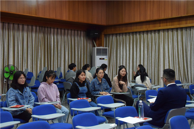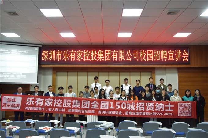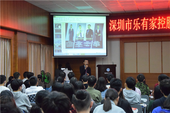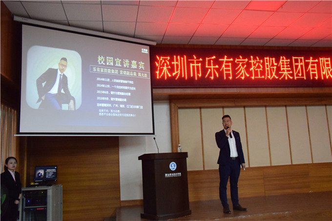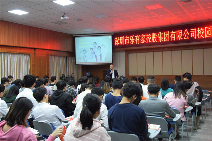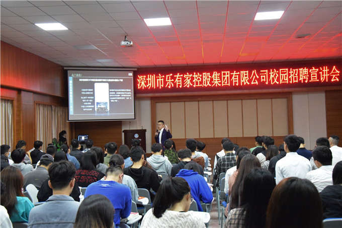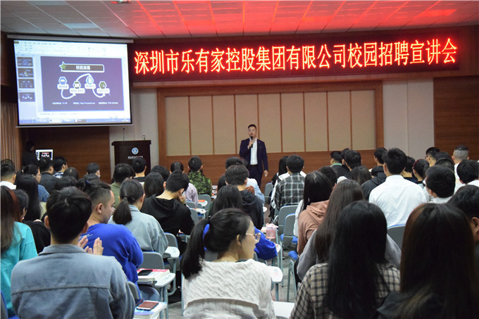 深圳市乐有家控股集团有限公司在我院举行校园招聘宣讲会 为了帮助2018级同学更好找到实习工作岗位,2020年12月2日,深圳市乐有家控股集团有限公司在学院第一报告厅举行了校园招聘宣讲会,乐有家控股集团营销副总裁揭光胜、人力部主任何翠丽、置业经理沈建华、店长林细妹现场为经济管理学院2018级学生做企业宣讲。 主讲嘉宾揭光胜副总裁从公司的性质、职能、业务发展、市场走向等分面为同学们做分享,同时对公司的招聘岗位做了简单介绍。 随后各部门经理进一步讲解公司运营情况,让现场的同学们更加了解乐有家控股集团。 面试现场