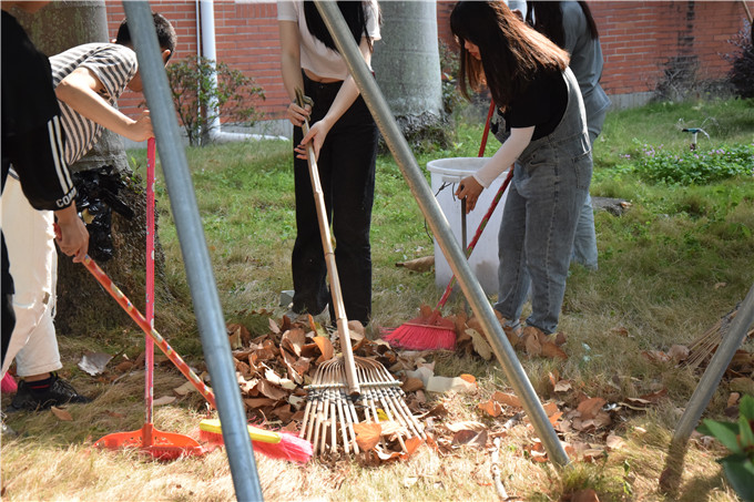 同学们分工合作、团结一致、上下同心,对校园内各种垃圾进行清洁!