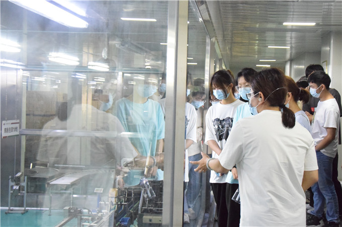 在参观过程中,企业负责人为同学们介绍了企业的文化和发展历程,带领同学们进入实验室、生产基地参观学习,并对同学们提出的问题一一解答。