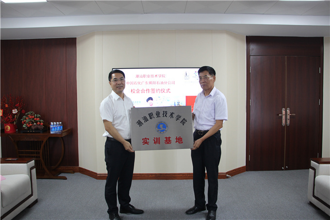 6月9日上午,学校党委书记、校长齐广武、校长助理谢耿、工商学院院长张文洲、招生就业部副部长吴智勤和吴容震老师前往中石化销售有限公司广东揭阳分公司参加校企合作签约仪式。 仪式上,中石化销售有限公司广东揭阳分公司总经理、党委副书记王海坚代表公司对我校领导老师的到来表示热烈欢迎,并详细介绍了公司概况、经营规模、未来发展和开展校企合作想法等方面情况,希望通过交流促进与学院合作,打造校企合作新模式。 齐广武书记代表学院致辞。他首先介绍了学院历史沿革、专业设置、师资力量、办学规模和特色等方面情况。他指出,与中石化销售有限公司广东揭阳分公司开展校企合作是学院对国家、省、市政府加强地方高校与企业间实现“校企合作,产教融合”号召的共同响应,我院在人才培养方案、师资技术支持、实习实训就业、技能竞赛、党团建设等方面与中石化销售有限公司广东揭阳分公司开展合作,提升学院的专业建设、社会服务能力、学生的技能水平和就业质量,实现学校、企业互惠共赢、共同发展。 随后,校企双方签订了校企合作协议、相互授牌,并合影留念。 此次校企合作仪式的成功举行,是我校深化校企合作、促进产教融合的又一次成功验证,对提升人才培养质量,促进学校服务地方经济建设具有重要意义。