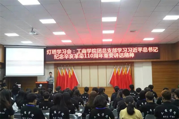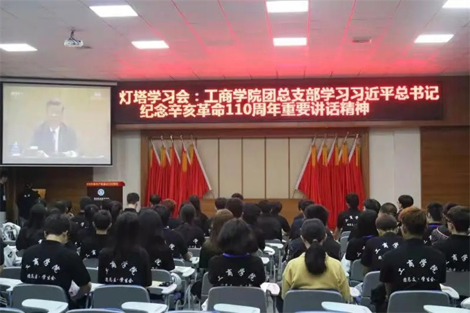 2021年11月16日晚上7点,工商学院团总支·学生会在学院第一报告厅组织召开“学习习近平总书记纪念辛亥革命110周年重要讲话精神”会议,团学全体成员参加了学习会议。本次学习会由团总支书记陈金辉主讲。 现场观看了习近平总书记纪念辛亥革命110周年重要讲话精神的视频,全体成员认真学习做笔记。 陈金辉书记强调,全体团学成员要深刻学习领会习近平总书记的重要讲话精神,作为当代学生,应该为实现第二个百年奋斗目标努力学习,奉献自己的青春和力量,努力成为中国特色社会主义事业的合格建设者和可靠接班人。 作为当代大学生,我们要深入学习领会习近平总书记重要讲话精神,继承和弘扬辛亥革命精神,要以史为鉴、开创未来,在全面建设社会现代化国家新征程上继续担当历史使命,掌握历史主动,不断把中华民族伟大复兴的历史伟业推向前进。