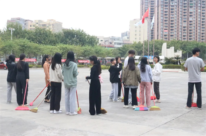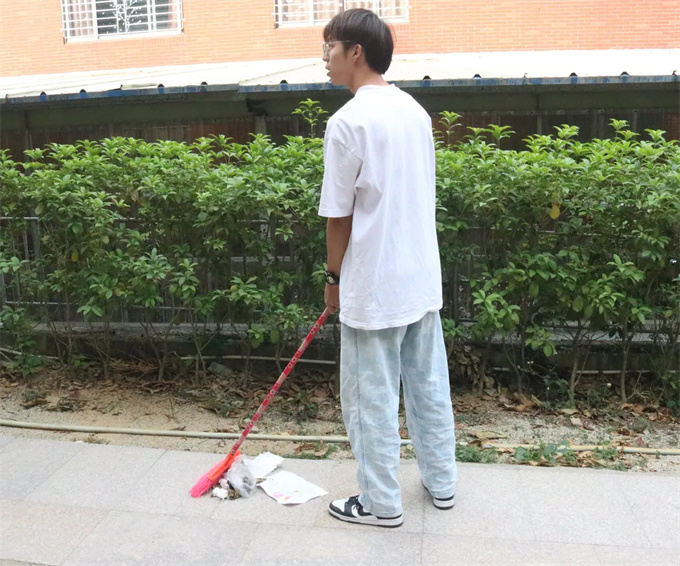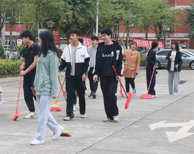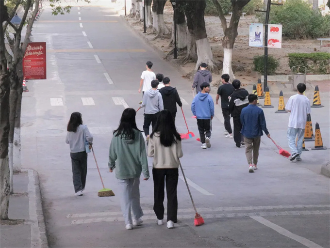 在进行校道清洁的同学们