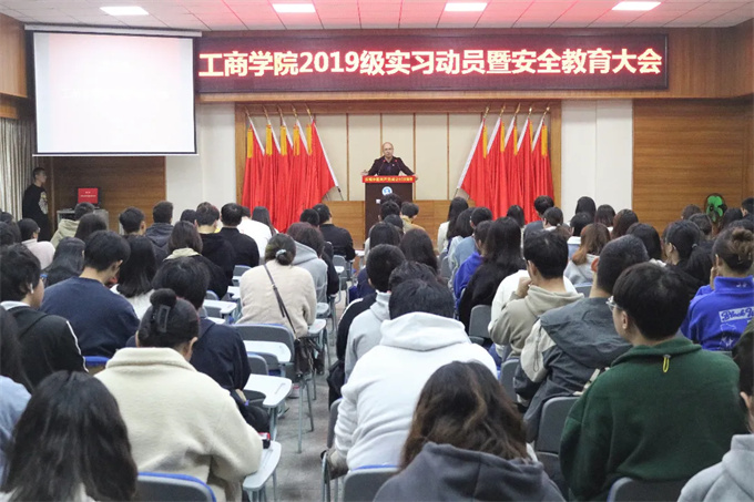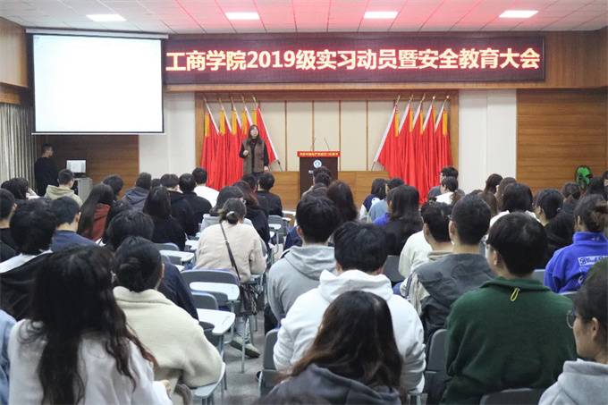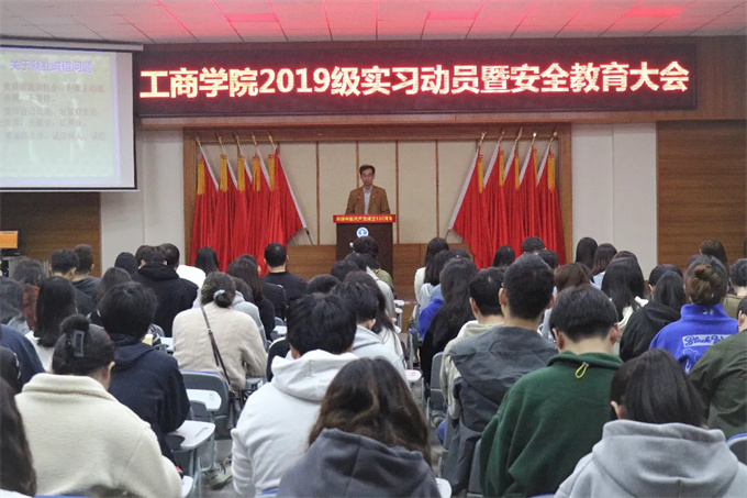 2021年12月23日下午,工商学院19级实习动员暨安全教育大会在潮汕学院第一报告厅举行,本次会议由尹华根书记主持,工商学院张文洲院长、工商学院专业指导老师及辅导员参加了此次大会。大会宣布了实习指导老师名单,全体指导老师与同学们进行了见面和交流。 大会现场 在动员大会中,张文洲院长向同学们详细普及一些岗位的相关知识,提出有关实习工作方面的建议,1.选择好自己的就业方向和目标很重要。2.要慎防传销组织和骗子公司,注意安全,不轻易上当受骗。3.在实习工作时要多观察,多主动,多学习,多积累经验,明确实践目标和目的。强调大家做事要多留一个心眼,在实习过程中要学习也要防护自身安全。 张文洲院长 会议第二项议程,尹华根书记就就业率统计和劳动合同留存以保护学生合法权益作了相应的补充。 尹华根书记 会议最后,19级辅导员欧芬婷老师就合同问题,联络方式和大家进行交流。让同学们要注意劳动合同事项和协议一些要填的注意事项,强调合同的重要性,提高学生对实习的重视,希望同学们要做好各项准备。 辅导员欧芬婷老师 预祝工商学院19级同学们顺利的找到心仪的工作,在实习过程中不断积累经验,实现自己的个人价值与社会价值。