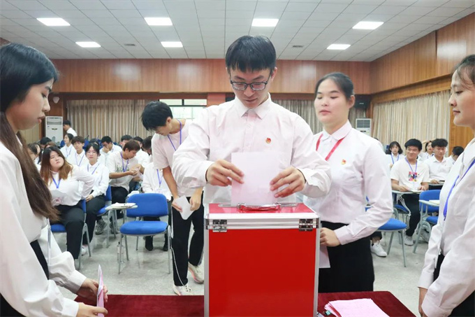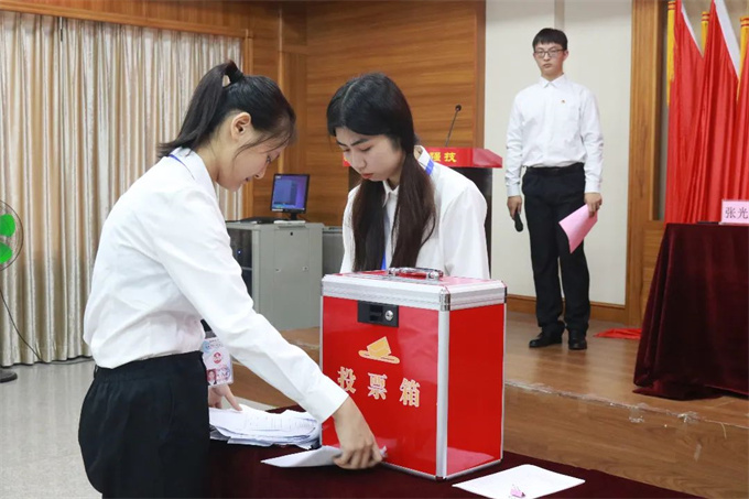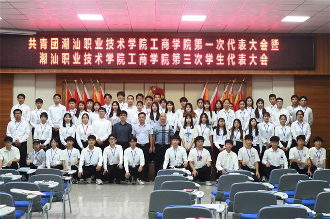 2022年6月22日,共青团潮汕职业技术学院工商学院第一次代表大会暨潮汕职业技术学院工商学院第三次学生代表大会在第一报告厅召开。学校团委书记钟逍彬,工商学院党总支书记尹华根,工商学院团委书记陈金辉,工商学院团委学生副书记林思华出席会议。大会在庄严的国歌声中开幕,学生会执行主席张光浩主持会议。 校团委书记钟逍彬代表校团委和学工部对大会的召开表示祝贺,向出席会议的全体代表和全院广大青年学生,致以亲切的问候。钟逍彬书记充分肯定了近年来工商学院团委、学生会在学生工作、团建、团改上取得的工作成果,对今后工商学院做好共青团与学生会工作提出三点要求: 一是广大青年要树立远大理想,争当理想信念的时代先锋。 理想信念是青年成长成才进步的动力源泉。青年时代树立坚定的理想信念,人生道路就会越走越宽广,无论遇到怎么样的艰难险阻,都能义无反顾、勇往直前。青年学生要将个人的理想与民族的复兴紧密结合起来,在不断为追求个人梦想、展现自身价值过程中,坚定听党话、跟党走。 二是要进一步提高创新能力和水平,切实服务好学院青年学生成长成才。 全心全意为青年学生服务是团学组织工作的出发点和落脚点,促进我院青年大学生成长成才,团学组织要充分发挥桥梁与纽带的作用,积极做好上情下达、下情上传,积极主动出谋划策,以高度主人翁意识助推学院教育事业的发展。 三是要进一步加强队伍建设,打造具有强大凝聚力的团学组织。 要求工商学院团委、学生会要不断加强自身建设,进一步增强学习习近平总书记重要讲话的思想自觉和行动自觉,引导广大团员青年努力成为社会主义核心价值观的积极倡导者。要落实全心全意为同学服务的工作作风,密切与青年学生的联系,倾听青年学生的心声,更好地代表和维护青年学生的合法权益。 强调 未来属于青年,青年创造未来。今年我们迎来了中国共青团成立100周年,今年我们将喜迎党的二十大的胜利召开,希望全体团员青年自觉将个人抱负同全社会的共同理想统一起来,共同为实现中华民族伟大复兴的中国梦,而努力奋斗! 工商学院团委书记陈金辉代表共青团潮汕职业技术学院工商学院委员会及潮汕职业技术学院工商学院学生会委员会作工作报告。 大会审议通过了《共青团潮汕职业技术学院工商学院委员会工作报告》和《潮汕职业技术学院工商学院学生会委员会工作报告》,选举产生共青团潮汕职业技术学院工商学院第一届委员会委员,以及潮汕职业技术学院工商学院第三届学生代表大会委员会委员(下附名单)。 共青团潮汕职业技术学院工商学院第一届委员会委员 陈金辉 张光浩 林思华 文雅憶 余 艳 张单嘉 杨雅茜 陈海涛 第三届学生代表大会委员会委员 林思华 张光浩 黄 婷 文雅憶 余 艳 张单嘉 肖良贞 大会第一项议程 全体起立,奏唱国歌 大会第二项议程 校团委书记钟逍彬讲话 大会第三项议程 工商学院团委书记陈金辉代表共青团潮汕职业技术学院工商学院委员会及潮汕职业技术学院工商学院学生会委员会作工作报告 大会第四项议程 审议团代会、学代会工作报告 大会第五项议程 投票选举 投票环节 现场计票 大会第六项议程 全体起立、奏唱团歌、大会闭幕 第一届团委委员与领导老师合影 第三届学生会委员与领导老师合影 大合照 共青团潮汕职业技术学院工商学院第一次代表大会暨潮汕职业技术学院工商学院第三次学生代表大会召开