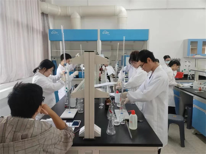 为检验学生理论知识与实操技能的掌握情况,亦为了让学生参与到充满创新性和趣味性的实验研究当中去。工商学院于2022年11月16日中午13:00在检测实训室举办第四届实验室技能大赛暨省技能大赛选拔赛。本次的评委有:教学督导任乃林教授、检测教研室主任庄晓纯老师、检测教研室余柯琼老师、李怡斯老师、宋成老师、蒋新颖老师、林曼老师以及学生评委黄怡欢、张杰浓同学。 本次比赛以线上理论线下实操混合考核模式进行。线上学生通过手机学习通APP自学实验安全知识、职业道德、仪器操作等理论知识,并完成相关考题,最终汇总学生一周的作答成绩作为理论成绩。线下每位学生在规定时间内完成“NaOH溶液的标定”实验实操及报告,考察学生对天平、移液管、滴定管的操作规范性及处理数据的能力。 大赛伊始,参赛选手都带上手套,坐立端正,操作优美,认真细致的完成每一步动作。因为每一次小小的操作误差都很有可能是拉开分数的重要因素。 速度也是致胜的关键,实验的时间仅剩半小时,已有同学完成实验,开始进行数据的处理,实验数据的好坏,由计算结果的“精密度”、“准确度”决定。 本次比赛不仅检验了学生们的专业学习情况,还提升了选手的艺术修养和心理素质水平。激发他们学习检测的兴趣,培养操作实践技能和思维能力,养成良好的科学素质。营造良好的教学环境和学习氛围,促进了学风建设。 本次选拔赛共选出8位选手获得一二三等奖,并作为省赛种子选手参加集训,最终择优代表学校参加2022-2023年度广东省职业院校学生专业技能大赛“工业分析与检验(高职组)”、“农产品质量安全检测(高职组)”两个赛项。