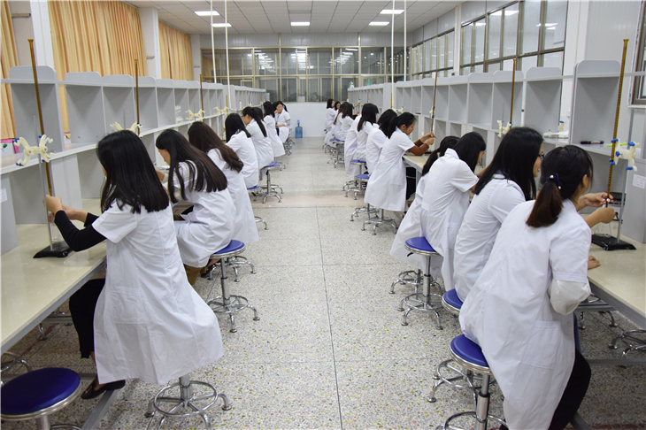 检测实验室主要以巩固学生课堂所学理论知识,做到理论与实践相结合,培养学生的独立操作能力跟熟练使用仪器。做到能独立检测样品,检测实验室也作为培养高级检测工的场所和实操技能的考场。
