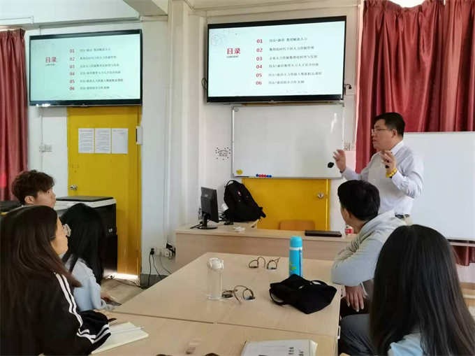 为了提高学生对人力资源管理专业前沿知识的了解, 帮助在校学生分析当前就业状况,指导大学生进行职业生涯规划,增强就业能力,11月24日,工商学院在综合楼B507举行人力资源管理专题知识讲座。本次讲座邀请了用友新道科技股份有限公司数字人力教育规划高级顾问-陈国峰教授来校主讲,我院张文洲院长、管理教研室林盛伟主任、部分专业老师和用友新道校企合作经理黄梓伟参加了本次活动。 陈国峰教授以“企业人力资源数智化转型趋势与院校数智化人才培养”为主题,以用友·新道数智人力的发展历程为例,与学生探讨新时代、新技术、新需求下的人力资源专业人才培养新模式,并分享了新道科技携手各大高校共同推进的数智化人力资源专业建设的优秀案例。 陈国峰教授指出,当下社会采用的是最新的“数字人力”理念,通过“理论+实践”的结合,培养人力资源专业的数字化意识与思维,并借助大数据分析工具发现、分析与解决企业人力资源管理问题的能力来提升团队成员间的沟通协作能力,是展示数字化能力的舞台。 他强调,数智化转型是企业的必然选择和发展趋势,人力资源也需要主动适应变化,从传统的事务型人力资源向战略变革引领型转型。他要求学生不仅要有人力专业理论功底,也要具备一定的数据思维和意识,能够学会利用数据分析,通过数据洞察发现企业人力资源运营中的问题和挑战,并解决问题。 通过本次的知识讲座,对学生深入理解人力资源管理相关知识起到了积极的推动作用,同时,让学生对于当前劳动力市场以及自身的职业和人生规划有了更加准确的了解和定位,为职业发展提供参考的方向,为毕业后走向社会打下坚实的基础。
