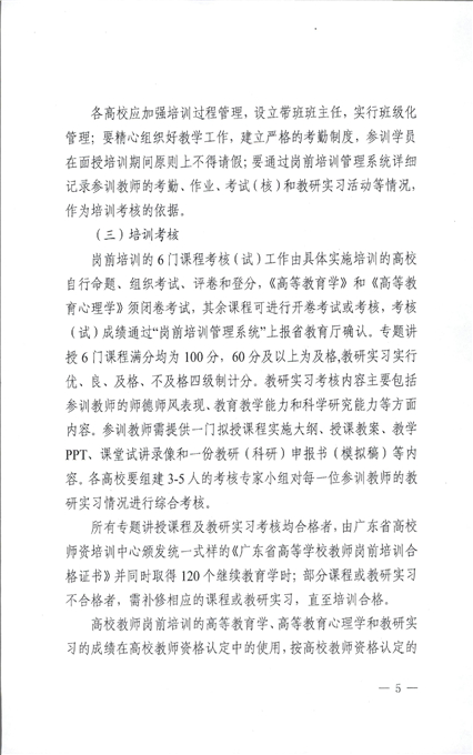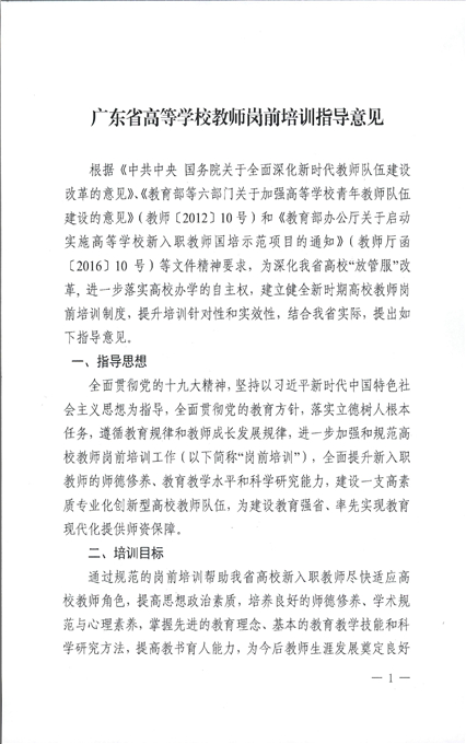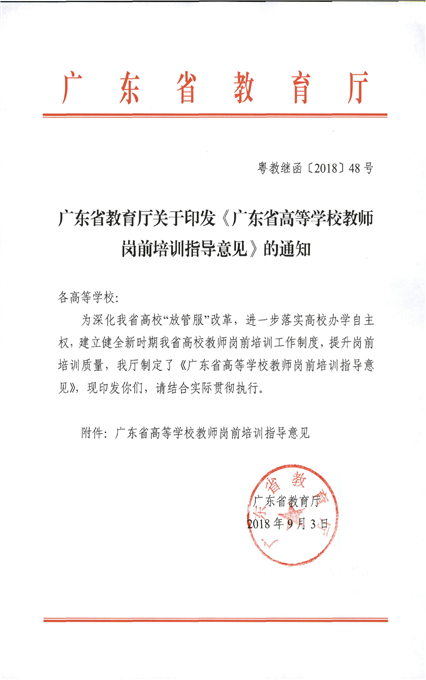 印发《广东省高等学校教师岗前培训指导意见》的通知
