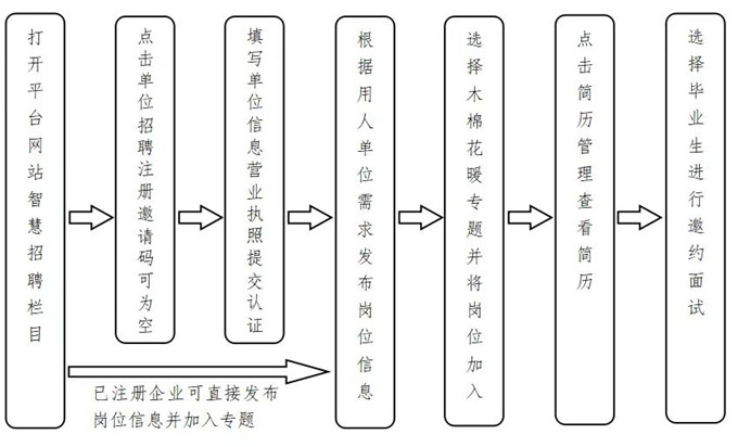 @2022届高校毕业生 正在找工作的同学看过来 4月1日-9月1日 省教育厅联合相关部门 举办“木棉花暖”广东省2022届 高校毕业生大型公益网络招聘活动 帮助同学们更加充分、更高质量就业 有兴趣的同学赶紧登陆 广东学生就业创业智慧服务平台 完善个人简历并在线进行投递 欢迎各用人单位积极参加活动 依托平台进行在线签约 详情往下看↓↓↓ 一:主办单位 广东省教育厅 广东省工业和信息化厅 广东省人力资源和社会保障厅 广东省卫生健康委员会 广东省退役军人事务厅 广东省人民政府国有资产监督管理委员会 二:活动时间及平台 活动时间:2022年4月1日至9月1日 官方平台:广东学生就业创业智慧服务平台 平台网址:http://job.gd.gov.cn 三:活动形式 本次活动将依托平台采取线上模式开展,全省高校毕业生和用人单位通过平台进行线上供需对接。平台将根据毕业生提交的个人简历和用人单位的用工需求,定期进行岗位信息智能精准匹配推送。达成意向后在线完成就业协议签订,实现一站式就业招聘服务,切实做好疫情防控常态化条件下的高校毕业生就业服务工作。 用户平台操作流程图 高校毕业生操作流程图 4:活动要求 各普通高校,一要认真做好组织发动工作,广泛动员毕业生在平台进一步完善个人简历并在线进行投递,引导毕业生通过线上形式进行求职面试;二要做好本次活动宣传工作,通过校内外各类平台对活动进行有效宣传;三要积极挖掘发动企业用人岗位资源,为毕业生提供更丰富多元化的就业岗位。 各相关部门,要认真做好组织宣传工作,及时将通知精神传达至下属单位,充分挖掘就业岗位,发动广大用人单位积极参加活动,登录活动平台注册并加入活动专题,为我省高校毕业生提供更多优质就业岗位。 各用人单位,要积极参加活动,根据本单位人才需求择优发布就业岗位,依托平台进行在线签约,减少线下接触,节约招聘时间和成本。招聘过程中,严禁就业歧视,要坚持一视同仁和公平就业原则,不得将毕业院校、国(境)外学习经历、学习方式(全日制和非全日制)等作为限制性条件,不得设置与职位要求无关的应聘条件。
