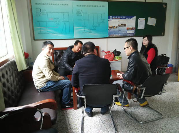 我办就业人员及经管系教研室主任曹凯热情接待了到访的企业人员,共同商讨招聘的相关事宜,包括2015年校园招聘会的具体事项,并向企业人员介绍了我院2016届毕业生的专业及人数。企业到访人员也详细地介绍了企业的概况,包括招聘需求,员工的发展历程等。目前,校企双方达成初步校企合作意向,为后期校企合作的深入开展奠定基础。
