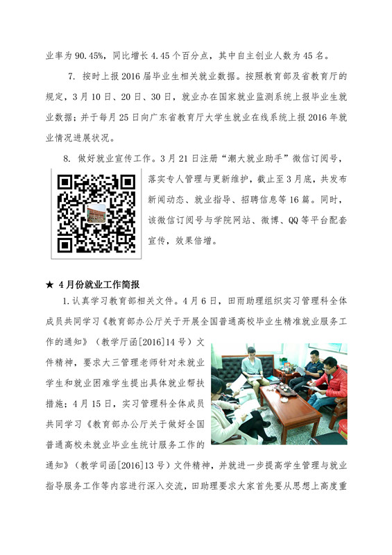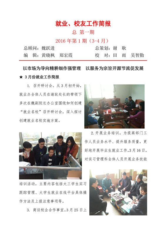 就业、校友工作简报 总第一期 2016年第1期(3-4月)