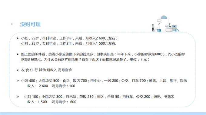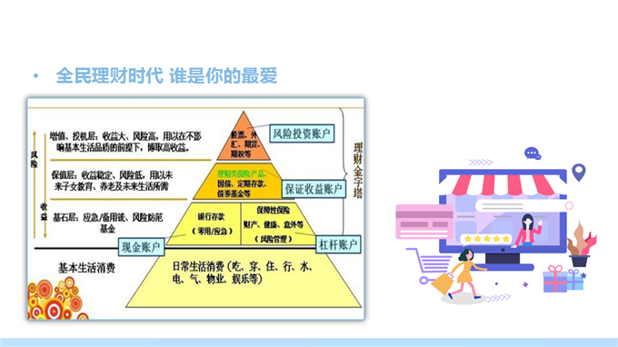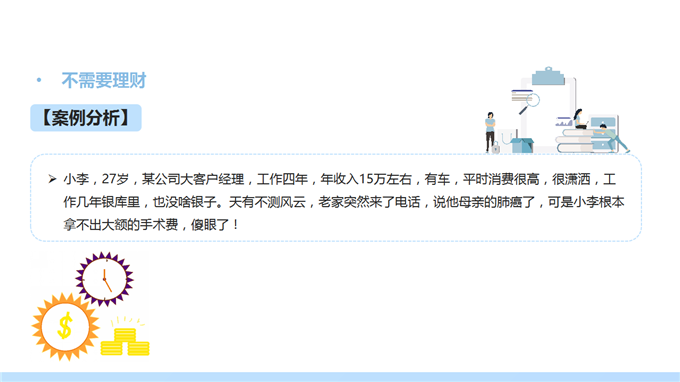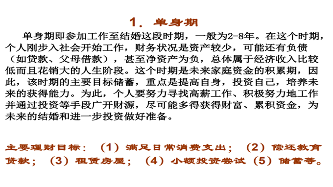 3、案例导入:人生每个阶段的理财目标不同,所以每个阶段的理财方案也不同。