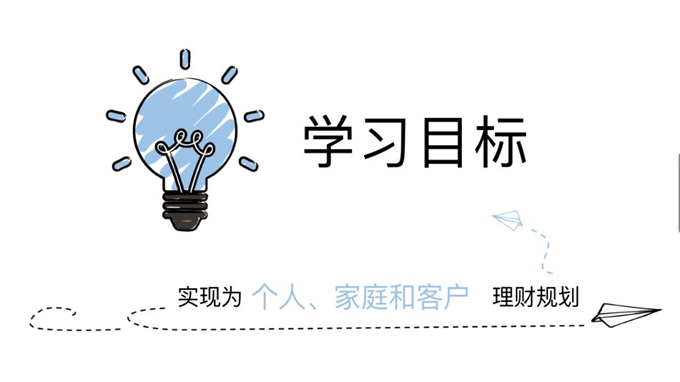 1、 能熟悉个人理财规划的内容与流程,了解个人理财规划职业的发展概况和前景。