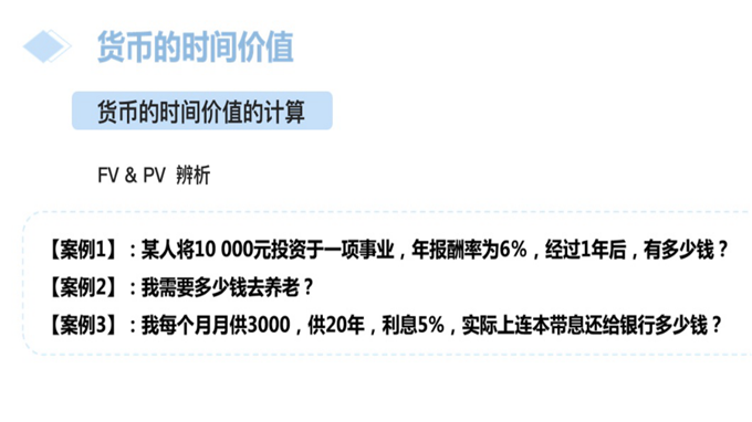 利用案例讲解单利复利、年金现值终值计算,使学生便于理解。