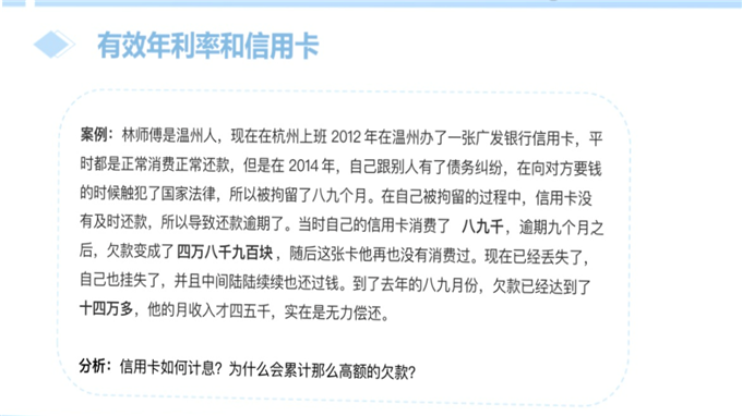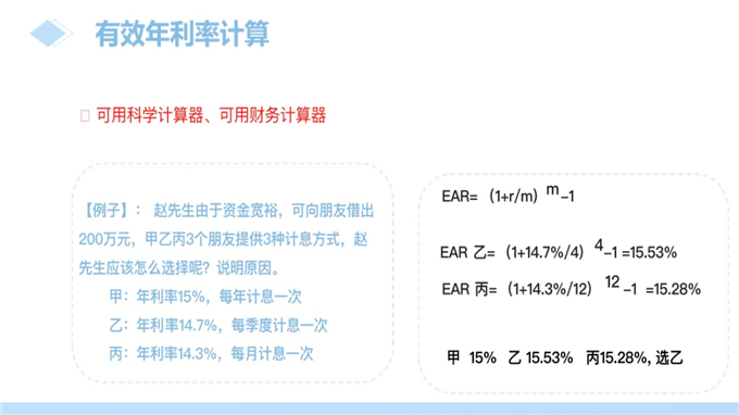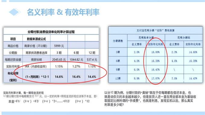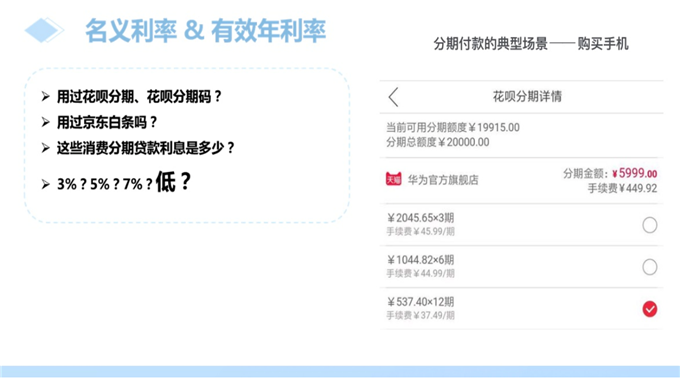 教学机智:用花呗分期、京东白条案例讲解有效年利率。