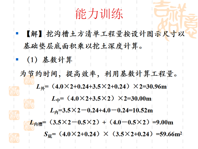 以问答的方式对此知识点进行讲授,并通过大量的案例讲解区别清单量与定额量的计算。(介绍公式的推演)