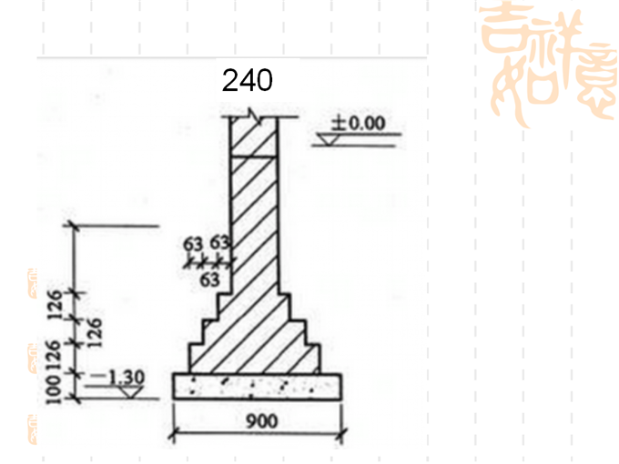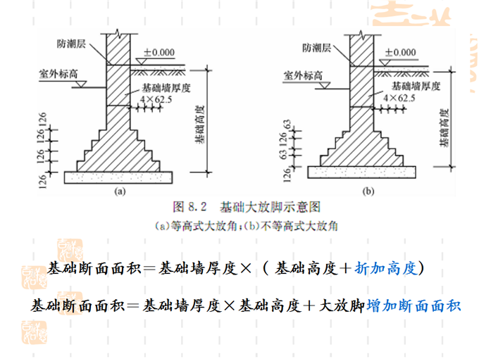 以图片形式展示同种材料与不同种材料基础与墙身的划分: