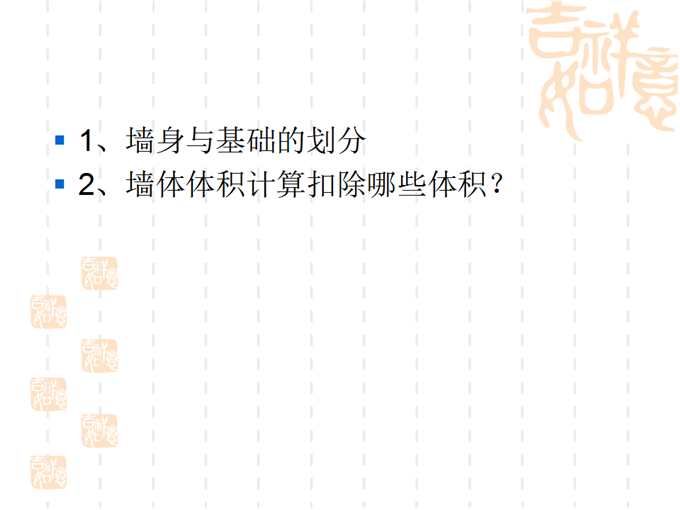 本节课程主要讲的是基础与墙体工程计量与计价,先要区分墙体与基础的划分,再算量,查定额套价。稍微难一点的是砂浆消耗量的计算及价格查找。
