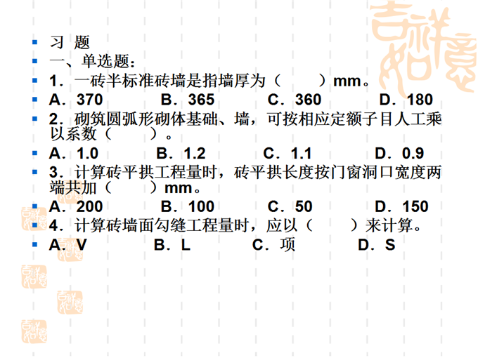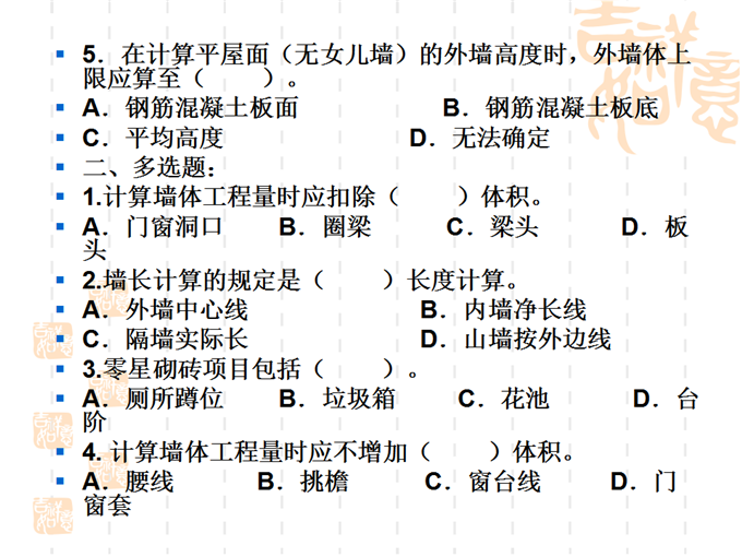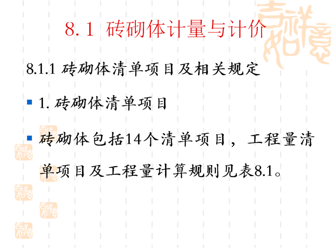 砌筑工程列项不是很多,只要掌握砌筑工艺,节能准确列出需要计算的工程量的项。在以后教学中会把握好讲课速度及大家对知识点的了解程度。每一步争取做到把原因讲透。