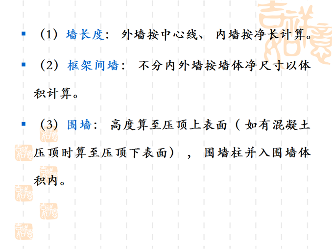 对于清单计量与定额计量里面主要是长度的计算,大家反应在进行内墙沟槽长度的计算时会晕乎乎的,掌握不是很牢,希望能加强对沟槽长度的计算。