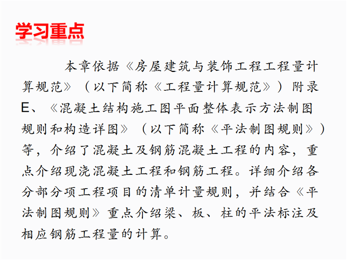 难点:工程量的计算规则、混凝土消耗量的计算、定额的查找