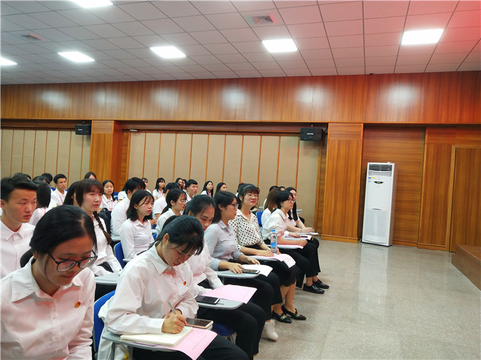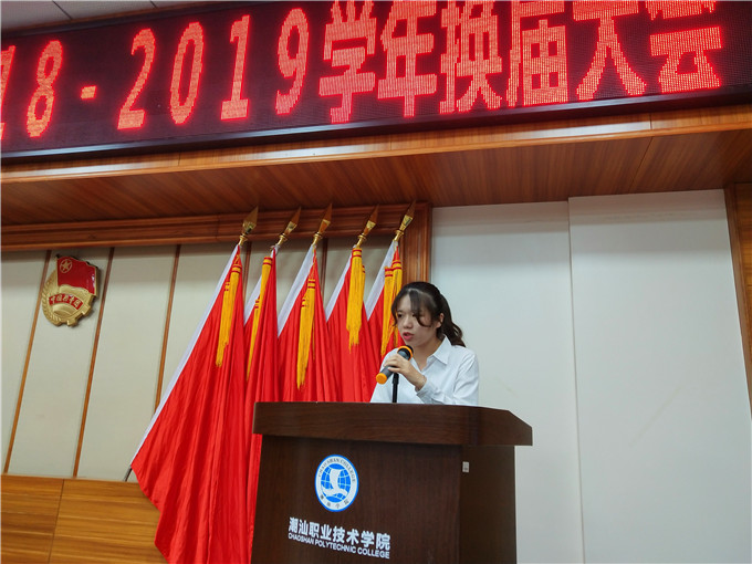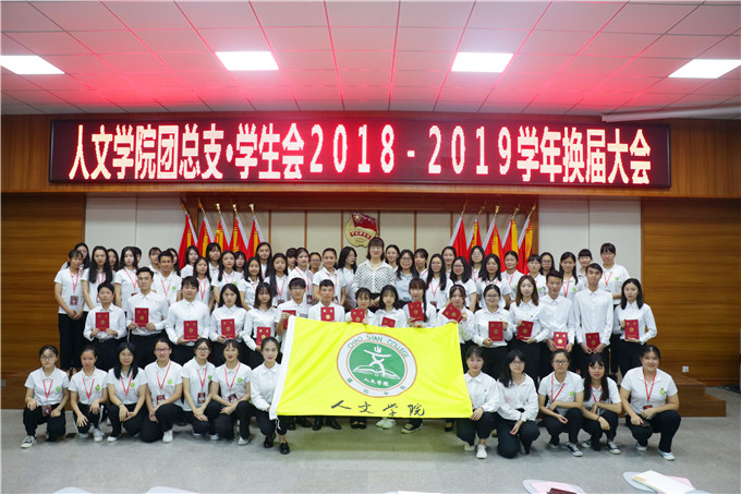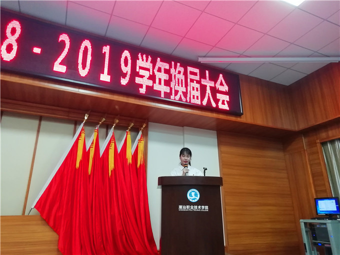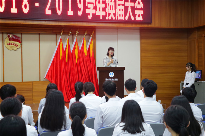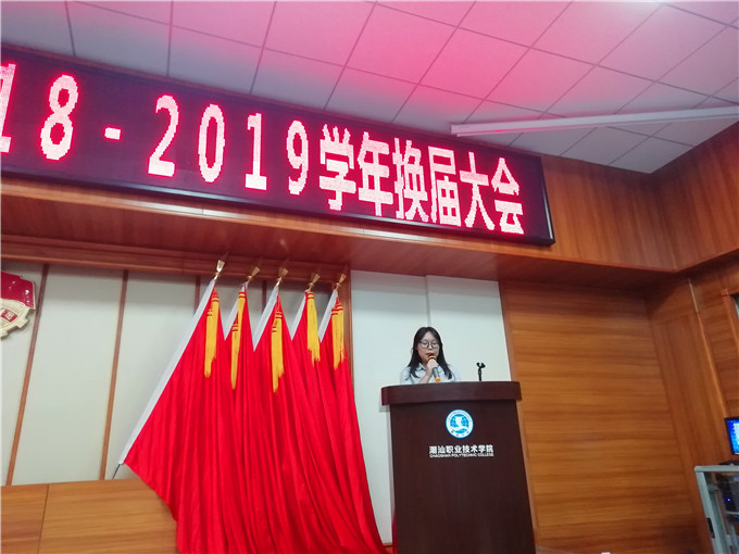 2019年 6月5日晚,潮汕职业技术学院人文学院团总支·学生会在第二报告厅召开2018—2019学年换届大会,出席本次会议的领导和嘉宾有人文学院党总支书记陈凯萍、人文学院团总支书记余佳璐、人文学院团总支·学生会全体干部及干事。 现场领导及全体团学干部、干事 大会在嘹亮的团歌中拉开了序幕。 接着,大会第二项议程,由人文学院党总支书记陈凯萍老师进行发言。陈凯萍书记对本次换届大会表示衷心的祝贺,同时介绍了人文学院党总支书记对团学工作的指导。她对新老干部提出了几点要求: 第一,强化自我管理;第二,提高服务意识;第三,树立榜样形象;第四,加强团结协作。各位干部要为人文学院的发展做出自己的贡献 大会第三项议程,由人文学院团总支·学生会秘书长王祖华汇报过去一学年的工作总结。 大会第四项议程,党总支书记陈凯萍老师、团总支书记余佳璐老师分别为主席团、部长团颁发聘书;随后由余佳璐老师宣读人文学院新一届干部任命名单。 最后,新任团总支副书记兼学生会主席曾桂铃发言,她提出各个部门之间要加强交流与沟通,互相协作,服务学院服务同学,勇于面对压力和挑战,使人文学院团总支·学生会绽放出更加夺目的光芒。 至此,人文学院团总支·学生会2018-2019学年换届大会圆满结束。相信新一届的学生会干部会不忘初心,砥砺前行,将人文学院学生工作推向一个新台阶!