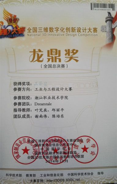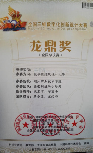 我院数字工程系师生在“2014年第7届全国3D大赛现场总决赛”中荣获二等奖1项、三等奖2项。本次大赛经过初赛、复赛,层层遴选出来自30个省的500多支团队,2000余名选手来到常州参加了最后的总决赛。我院来自室内设计和工业设计专业的3只团队闯入了总决赛,分别取得了二、三等奖的好成绩。在专业老师精心指导下,团队成员在赛场上充分发挥出自己的水平,展示了自己的设计作品,经过层层比拼,获得了可喜的成绩。