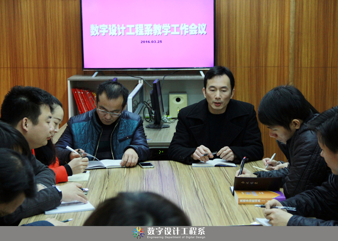 2016年3月25日午,数字系在展览室会议室召开全系教职工会议,会议由黄海宏主任主持,黄杰波副主任做具体工作安排: